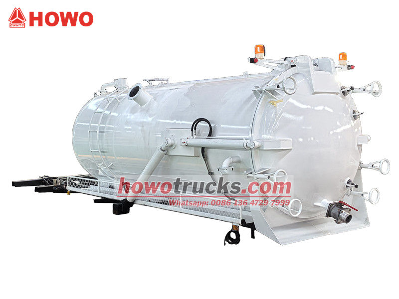 Optional MORO or Jurop pumpKomplet karoserije cisterne za čišćenje odvodnje od 10 CBM je glavni uređaj za ispumpavanje, skladištenje i ispuštanje otpadnih voda. Primarno se sastoji od vakuumske pumpe, spremnika otpadnih voda, usisnih i ispusnih cijevi, hidrauličkog upravljačkog sustava i operativne ploče.