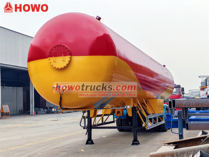 Prikolica-cisterna za LPG je kamion posebno dizajniran za prijevoz ukapljenog naftnog plina. U proizvodnom procesu koriste se materijali visoke čvrstoće i otporni na tlak kako bi se osigurala sigurnost i stabilnost tijekom prijevoza. Tijelo spremnika ima izvrsne performanse brtvljenja, što može učinkovito spriječiti curenje plina i poboljšati učinkovitost i sigurnost prijevoza. Prikolica-cisterna za LPG široko se koristi u petrokemijskoj industriji i koristi se u prijevozu na velike udaljenosti, gradskoj opskrbi plinom i drugim područjima. To je učinkovit i pouzdan transportni alat.