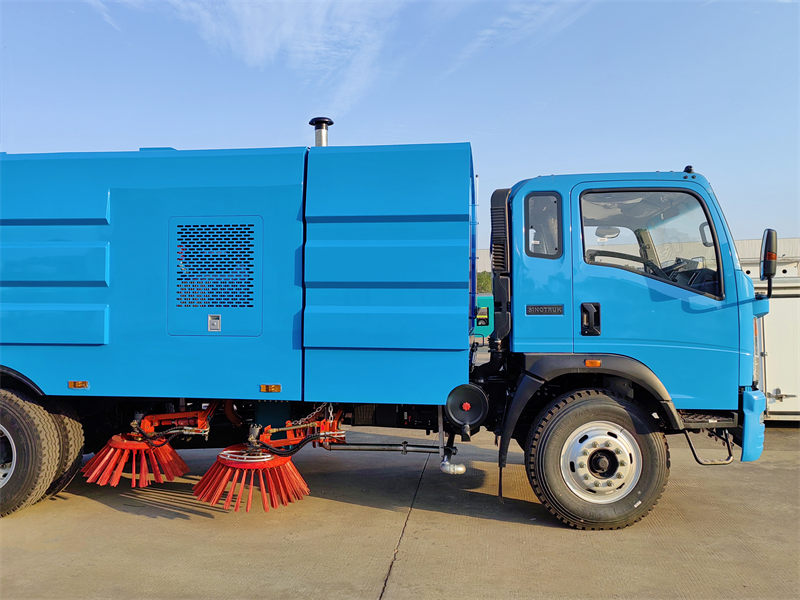 7200The Howo 4x2 kamion za čišćenje cesta je stroj sa snažnim performansama metenja i učinkovitim radom, pogodan za čišćenje gradskih ulica, industrijskih parkova i upravnih zgrada. Njegov spremnik za prašinu od 6 kubičnih metara i spremnik za vodu od 2 kubičnih metara, u kombinaciji s tijelom čistača od nehrđajućeg čelika debljine 4 mm, osiguravaju izdržljivost i učinkovito čišćenje. Opremljen dizelskim motorom od 160 KS i WLY 6-brzinskim mjenjačem, pruža snažnu i glatku vožnju.