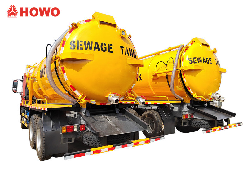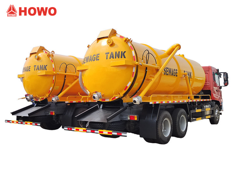 ● Howo kamion za otpadne vode s 10 kotača ima spremnik od visokočvrstog ugljičnog čelika s unutarnjom antikorozivnom obradom, koji nudi otpornost na tlak i udarce za dulji vijek trajanja.