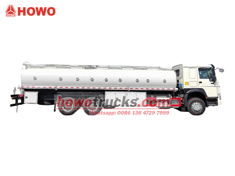 HOWO kamion za dizelski prijevoz je cisterna profesionalne klase izgrađena na teškoj šasiji HOWO 6×4, što osigurava stabilnost za prijevoz teškog tereta. Opremljen spremnikom od ugljičnog čelika od 18.000 litara, unutrašnjost je obrađena antikorozivnim premazom i podijeljena u devet neovisnih odjeljaka, što omogućuje istovremeni prijevoz više vrsta naftnih derivata. Gornji dio karoserije opremljen je pumpom za gorivo visokog protoka od 60 m³/h, crijevom za istovar od 4 inča, aluminijskom protukliznom stazom i sigurnosnim uređajima europskih standarda, što pruža učinkovite mogućnosti utovara/istovara i sveobuhvatan sustav sigurnosne zaštite. Služi kao profesionalno rješenje za petrokemijsku transportnu industriju.