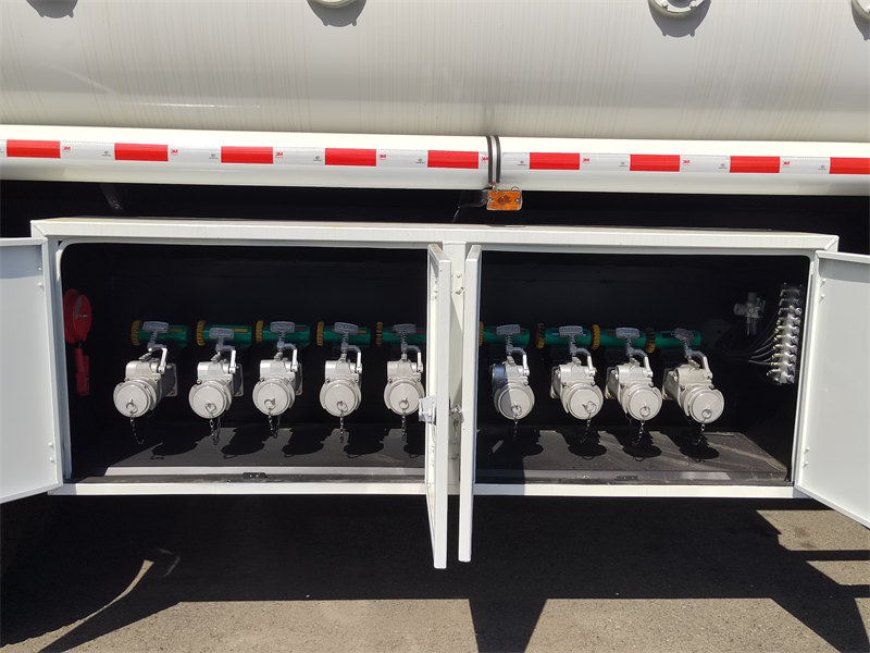 Opremljen poklopcima šahtova europskih standarda (s odzračnim ventilima i ventilima protiv prelijevanja), sustavima za povrat pare i vatrootpornim ventilima od aluminijske legure. Spremnik od ojačanog ugljičnog čelika debljine 6 mm pruža višestruke zaštitne mjere za učinkovito sprječavanje curenja i rizika od eksplozije, u skladu sa standardima prijevoza opasnih materijala.