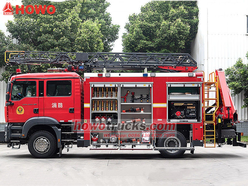 Howo vatrogasno spasilačko vozilo s ljestvama specijalizirano je vozilo posebno dizajnirano za vatrogasne i spasilačke operacije. Koristi šasiju Howo TX serije, snažan motor od 400 KS i izvrsnu upravljivost. Kamion ima jarko crvenu boju i opremljen je s više pretinaca za pohranu razne spasilačke opreme.