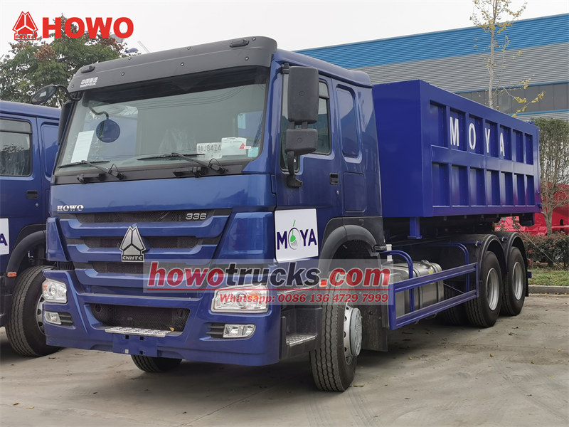 Prilagođeni HOWO teški kamioni za odvoz smeća od 20 tona koriste se za prijevoz kontejnera na lokalna odlagališta otpada, pražnjenje smeća i zatim njegovo vraćanje na određena mjesta za prikupljanje smeća. Široko se koriste u komercijalnom i ruralnom gospodarenju otpadom u malim gradovima. Veliki kamioni za odvoz smeća s podizanjem kontejnera mogu prevesti do 20 tona smeća odjednom. Koristili su hidraulične ruke za podizanje kontejnera na stražnji dio kamiona. Dizajn hidraulične ruke eliminira potrebu da operateri ručno spajaju i odvajaju kuku s kontejnera za otpad.
