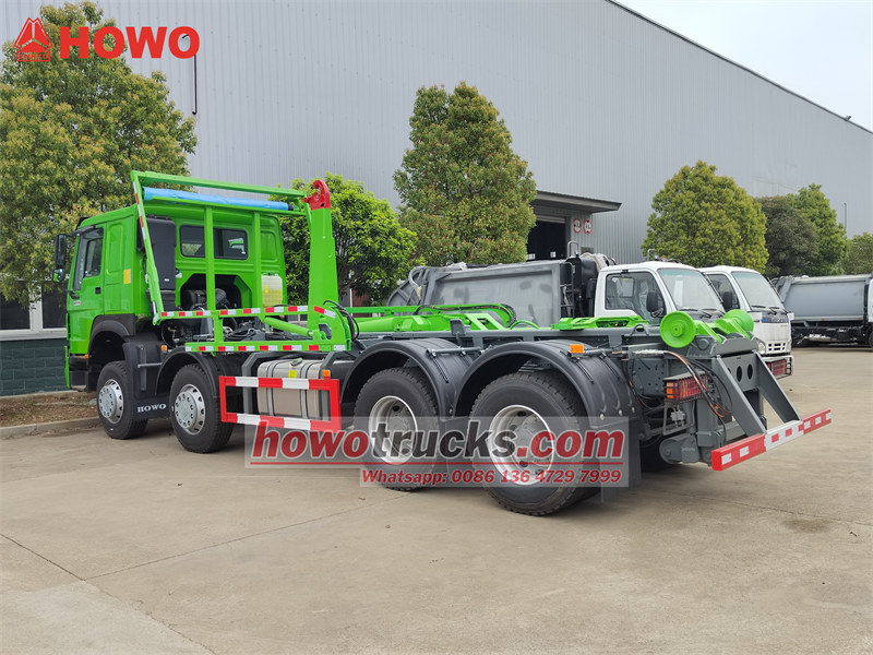 Sinotruk HOWO Hooklift je dizajniran i Proizveden kao kamion za smeće s kukom od 26 tona, s teleskopskom glavnom rukom, mehaničkom sigurnošću kuke, dvostrukim cilindrom za podizanje i vanjskim hidrauličkim zaključavanjem. Također je usklađen s CE standardnom električnom upravljačkom kutijom, što omogućuje sigurno i pouzdano upravljanje iz kabine. Prilagođeni utovarivači s kukom od 26 tona montirani su na šasiju kamiona HOWO 8x4, a rade s kantama za smeće od 7 m. Howo oprema za dizanje otpada od 26 tona prikladna je za utovar, istovar i prijevoz teške robe, a može se koristiti i s kontejnerima.