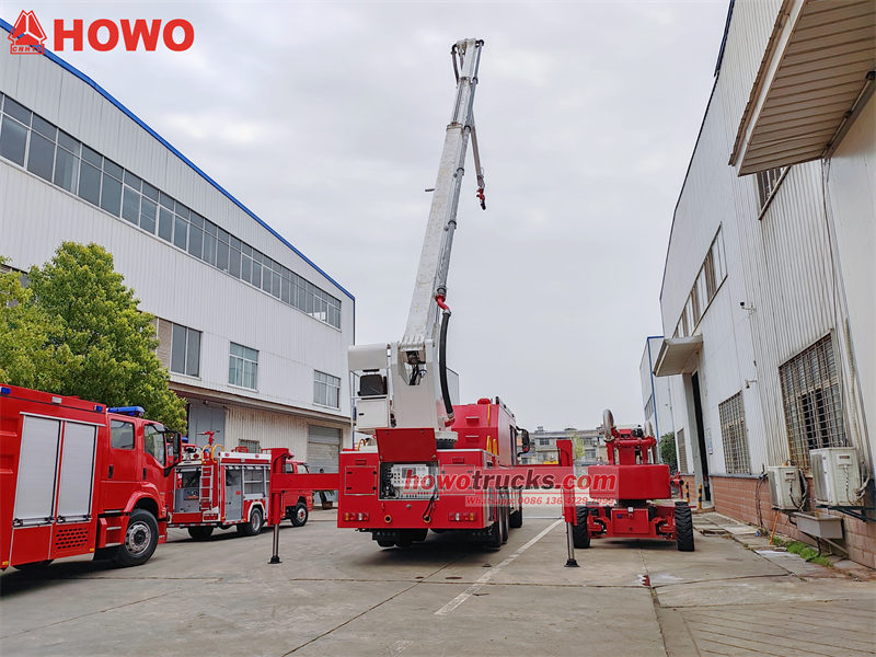 3. Vatrogasno vozilo Howo ima sklopivu strukturu ruke. Donja ruka se može podići unutar 80°, a donja i gornja ruka se mogu podići unutar 150°. Presjek ruke ima četverokutnu strukturu kutijastog tipa, koja je zavarena od čelika visoke čvrstoće.