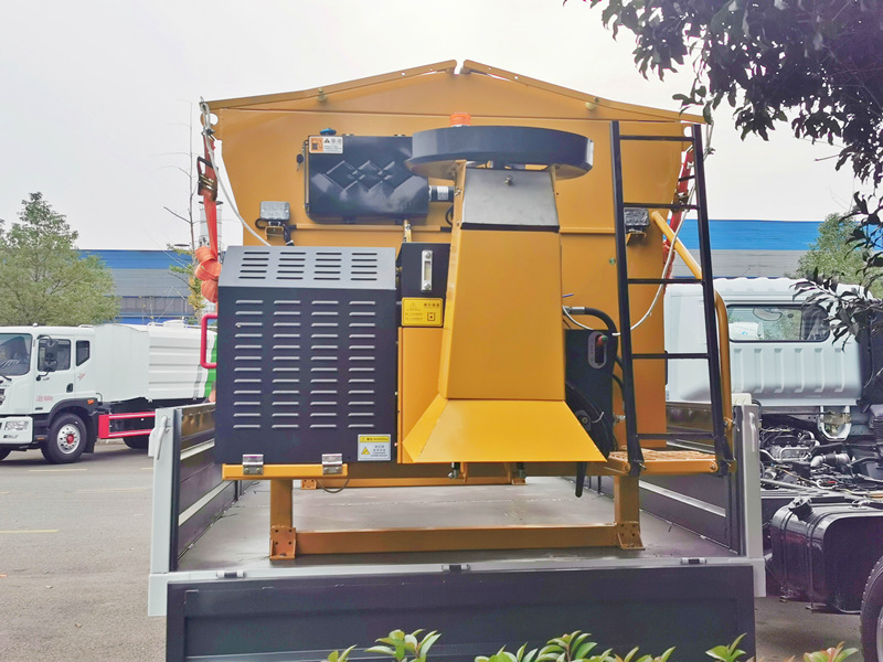 Stroj za rasipanje sredstva za topljenje snijega od 4CBM CS-SJ4000 instalirano na potpuna karoserija tereta s otklopivim stranicama, puni kapacitet 4000L baziran na visokokvalitetnom nehrđajućem čeliku Q235, motor usklađen s lančanim sustavom za učinkovit rad, dostupna širina rasipanja može biti 2-10 m i kapacitet rasipanja soli 20-150 g/m2, potpuno podesiv tip. Promjer ploče za rasipanje 550 mm s radnom brzinom 5-20 km/h, u kabini njemački PLC model upravljanja za siguran rad.
