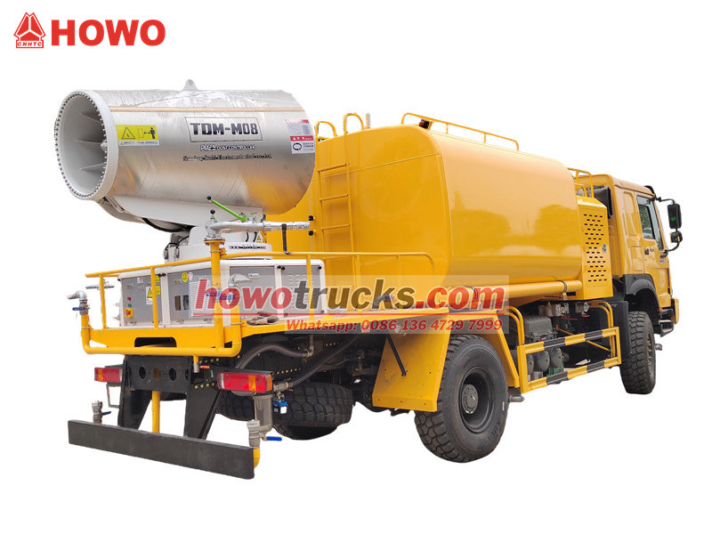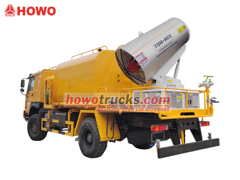 Kamion s vodenim topom HOWO 4×4 izgrađen je na šasiji HOWO s pogonom na sva četiri kotača, opremljen je motorom od 300 KS i pogonom na sva četiri kotača, pružajući izvanredne performanse na složenim terenima. S vodenim topom ultra dugog dometa od 80 metara s 90 mlaznica, može prskati finu vodenu maglu (20-200 μm) s maksimalnim područjem pokrivanja od 20 000 m². U kombinaciji s velikim spremnikom vode od 10 000 litara i sustavom za prskanje pod visokim tlakom, učinkovito obavlja zadatke poput smanjenja prašine na cestama, suzbijanja prašine na gradilištima i poljoprivrednog prskanja. Posebno je prikladan za kontrolu prašine u rudarskim područjima, lukama, zaštiti urbanog okoliša i drugim područjima.