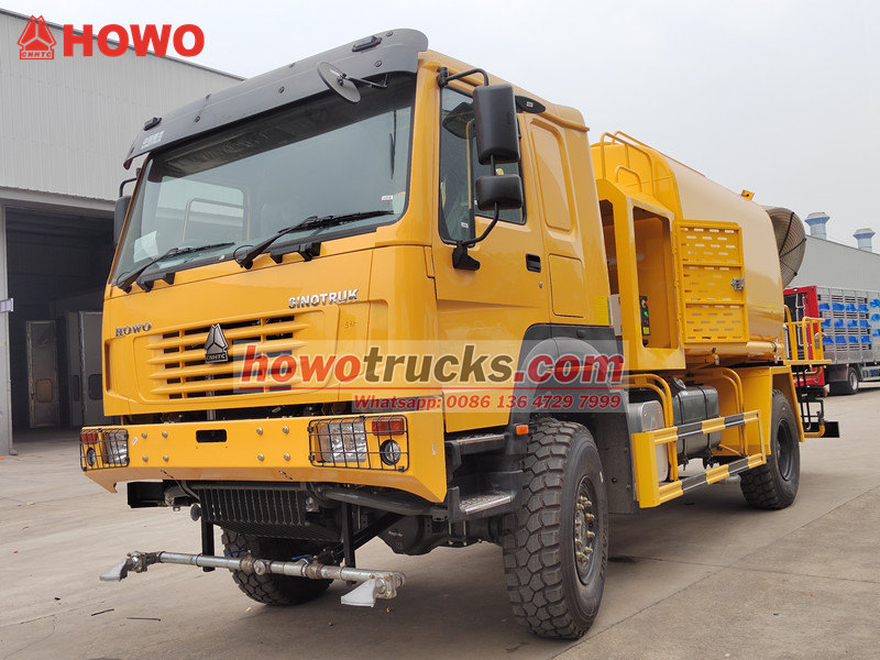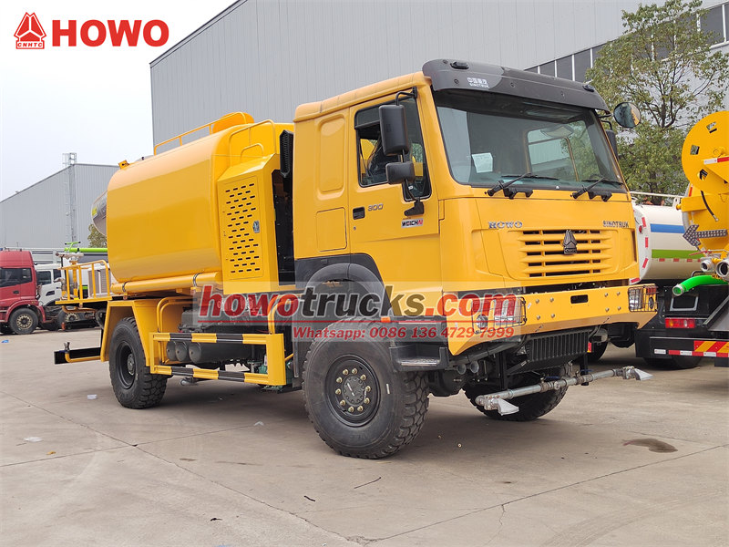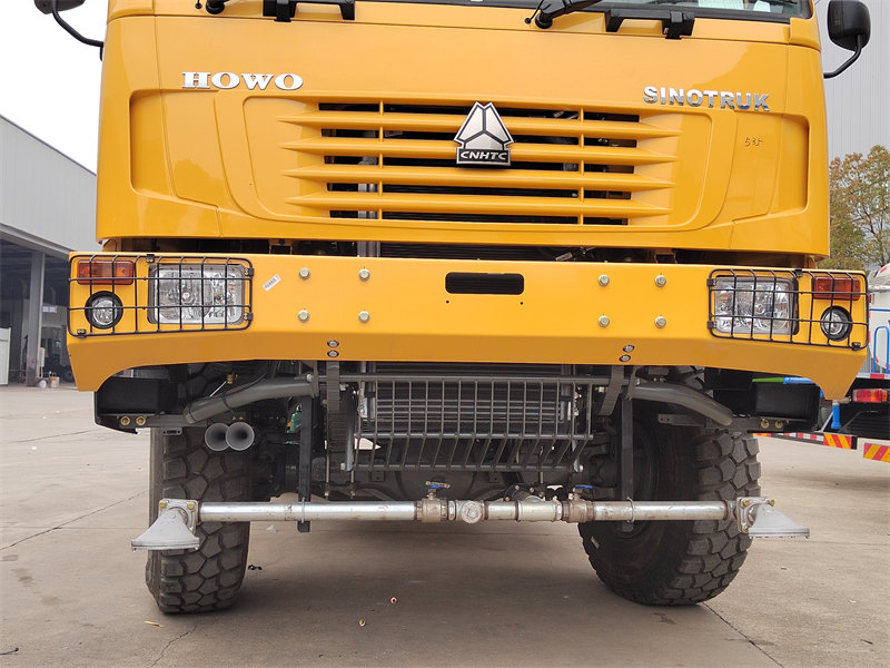 13000Kamion cisterna za vodu HOWO 4×4 je visokoučinkovito, višenamjensko vozilo za suzbijanje prašine izgrađeno na robusnoj terenskoj šasiji HOWO 4×4 s pogonom na sva četiri kotača, s iznimnim terenskim sposobnostima. Opremljen je lijevanom prednjom upravljačkom pogonskom osovinom STR i stražnjom pogonskom osovinom ST16, zajedno sa širokim međuosovinskim razmakom (2022/1830 mm), što osigurava izvrsnu stabilnost na složenim terenima. Pogonski sustav 4×4, uparen s motorom WD615.97C od 300 konjskih snaga, isporučuje ogroman okretni moment od 1340 N·m, što mu omogućuje lako upravljanje ekstremnim okruženjima poput planina i pustinja.
