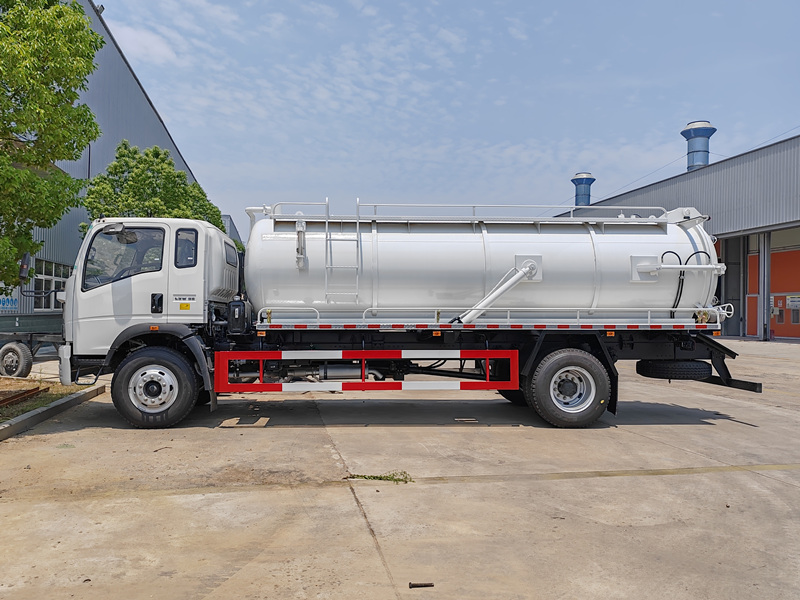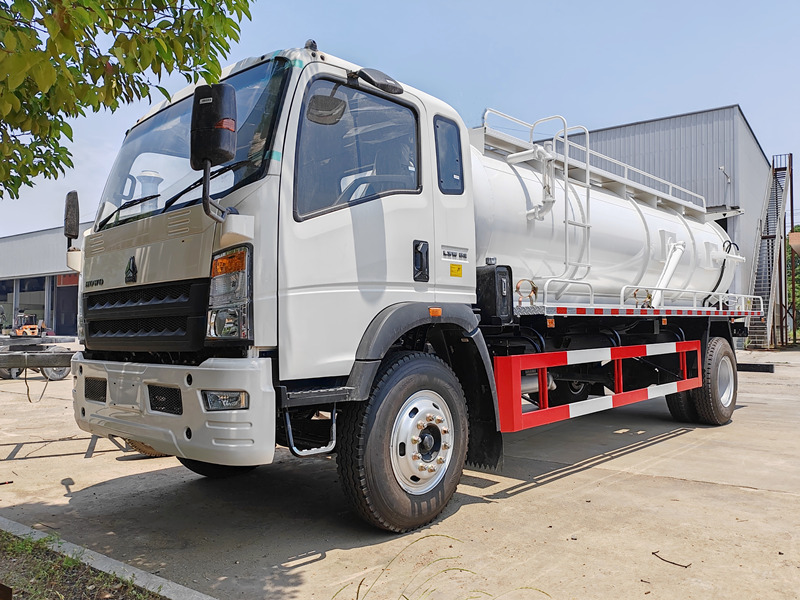HOWO kamion za usisavanje kanalizacije od 5 kubnih metara, ima HOWO Commander 2080 redova s polukabinom, međuosovinskim razmakom od 4200 mm, opremljen sCummins ISF3.8s3168 motor od 168 konjskih snaga, mjenjač WLY6G70, gornji dio tijela je spremnik za usisavanje otpadnih voda od 5 kubičnih metara, materijal od ugljičnog čelika, opremljen vakuumskom pumpom Jurop PN106D, cijevi za otpadne vode, ljestvama, upravljačkim ventilom (upravljanje podizanjem spremnika i stražnjih vrata), spremnikom hidrauličkog ulja, ventilom za pražnjenje stražnjih vrata itd.
