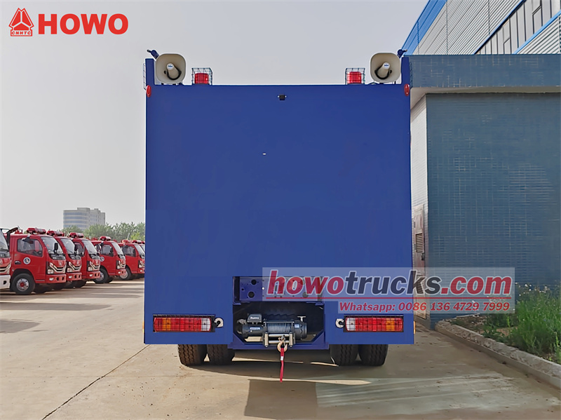 18000(2 axles)The Oklopni kamion za kontrolu nereda HOWO je vrhunsko vozilo otporno na eksplozije s pogonom na sva četiri kotača 6x6, bazirano na teškoj šasiji Sinotruk HOWO HW76 s dvostrukom kabinom. Ima integriranu karoseriju otpornu na eksplozije, daljinski upravljani glavni top na vrhu i fiksni vodeni top sprijeda. Podržava multimedijsko prskanje vode, boje i pjene pod visokim tlakom, s dometom većim od 70 metara, što omogućuje trodimenzionalnu kontrolu nereda.
