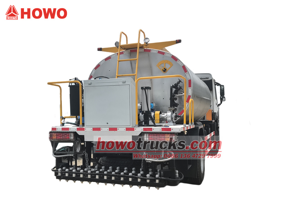 Distributer asfalta HOWO 4x2 od 8 kubnih metara je modificirana šasija HOWO HW76 s međuosovinskim razmakom od 4600 mm. Opremljen je motorom WP10.300E22 i mjenjačem HW19710. Gornji dio je spremnik za asfalt od 8 kubnih metara, opremljen inteligentnom pumpom za asfaltnu izolaciju RCB38/0.6-80F, 36 asfaltnih mlaznica straga, širinom prskanja od 6 m, volumenom prskanja od 0,2-3 kg/m², uvoznim dizelskim plamenikom (kalorijska vrijednost: 10×10⁴kcal/h), automatsko zagrijavanje termalnog ulja, inteligentno računalno upravljanje u kabini i pomoćni generatorski set.