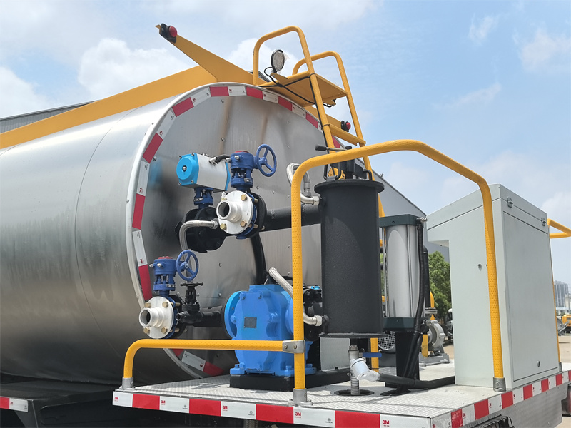 • Kapacitet spremnika: 8 kubičnih metara. Izrađena od visokokvalitetne ploče od ugljičnog čelika, unutrašnjost je podvrgnuta profesionalnoj antikorozivnoj obradi (npr. prskanje epoksidnom asfaltnom bojom), a vanjština je prekrivena visokoučinkovitim izolacijskim materijalom, što rezultira izvrsnim toplinskim izolacijskim performansama, s padom temperature asfalta od ≤2°C/sat.