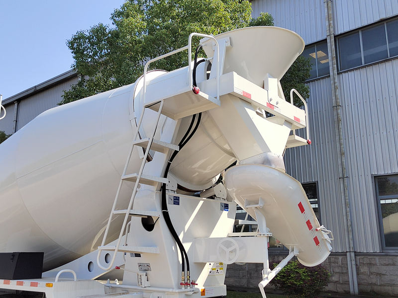 3. Spremnik za miješanje: Bubanj za miješanje ključna je komponenta cijelog kamiona s miješalicom za beton. Služi kao spremnik za skladištenje betona i igra ključnu ulogu u sprječavanju skrućivanja i segregacije betona. Lopatice unutar spremnika prvenstveno služe za miješanje i vođenje betona.