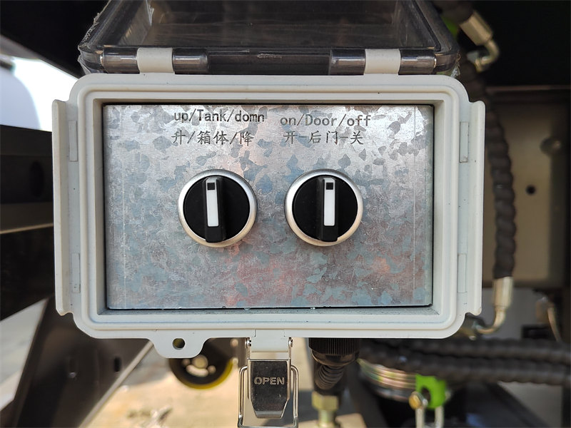 Stražnja vrata spremnika opremljena su hidrauličkim mehanizmom za zaključavanje s klinom. Ovaj sustav omogućuje automatsko otvaranje, zatvaranje i zaključavanje vrata jednim dodirom, osiguravajući sigurno brtvljenje kako bi se učinkovito spriječilo curenje otpada i kanalizacije.