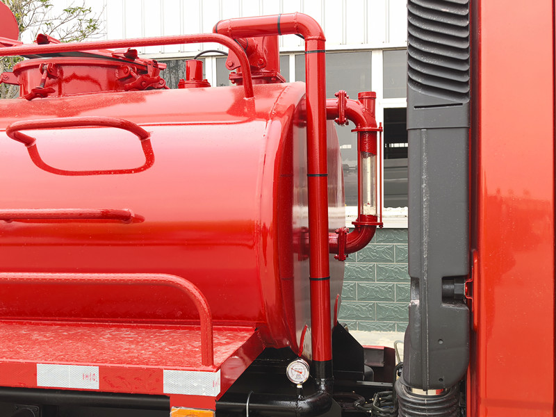 ●Kamion je opremljen hidrauličkim uređajem za podizanje koji naginje spremnik kako bi dodatno ubrzao pražnjenje otpada. Ispustni otvor je dizajniran za jednostavno spajanje na kanalizacijske cijevi ili uređaje za pročišćavanje otpadnih voda.